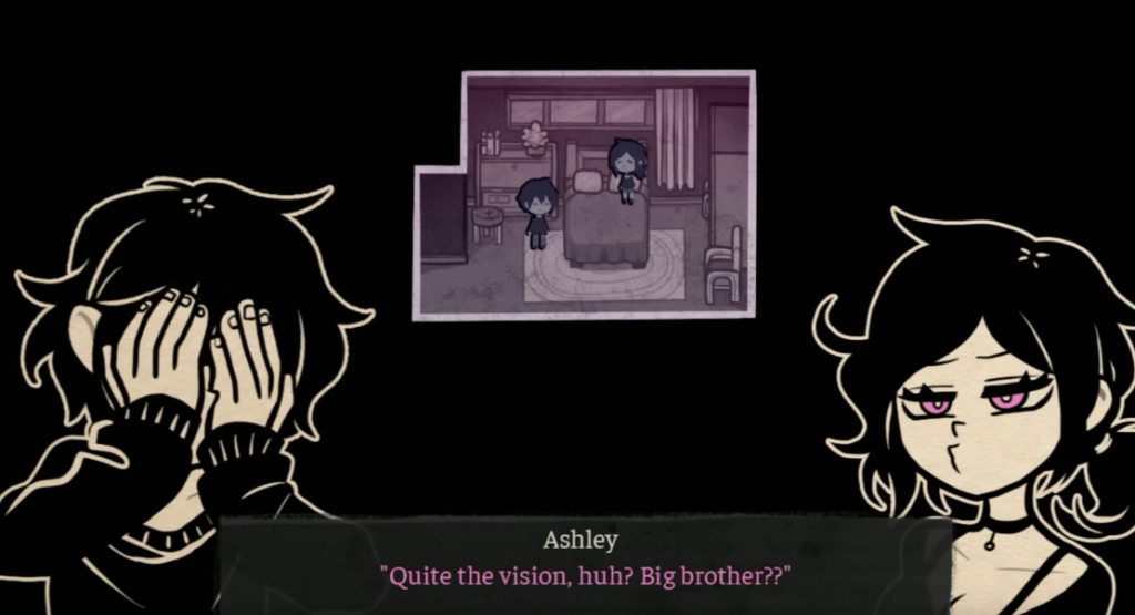 I can say for certain that this is the most clever variation of the “villain offers to let you join them in order to save their own skin” trope. While it is quite clear that Mr and Ms Graves are abusive scumbags, there is very much a reason for Andrew to turn on Ashley. This game makes no reservations about reminding the player what a monster Ashley is. This was demonstrated earlier in the game via a flashback to when Andrew and Ashley were kids. Back then, they used to be closer because Mrs Graves asked Andrew to take care of Ashley, which he took to heart.